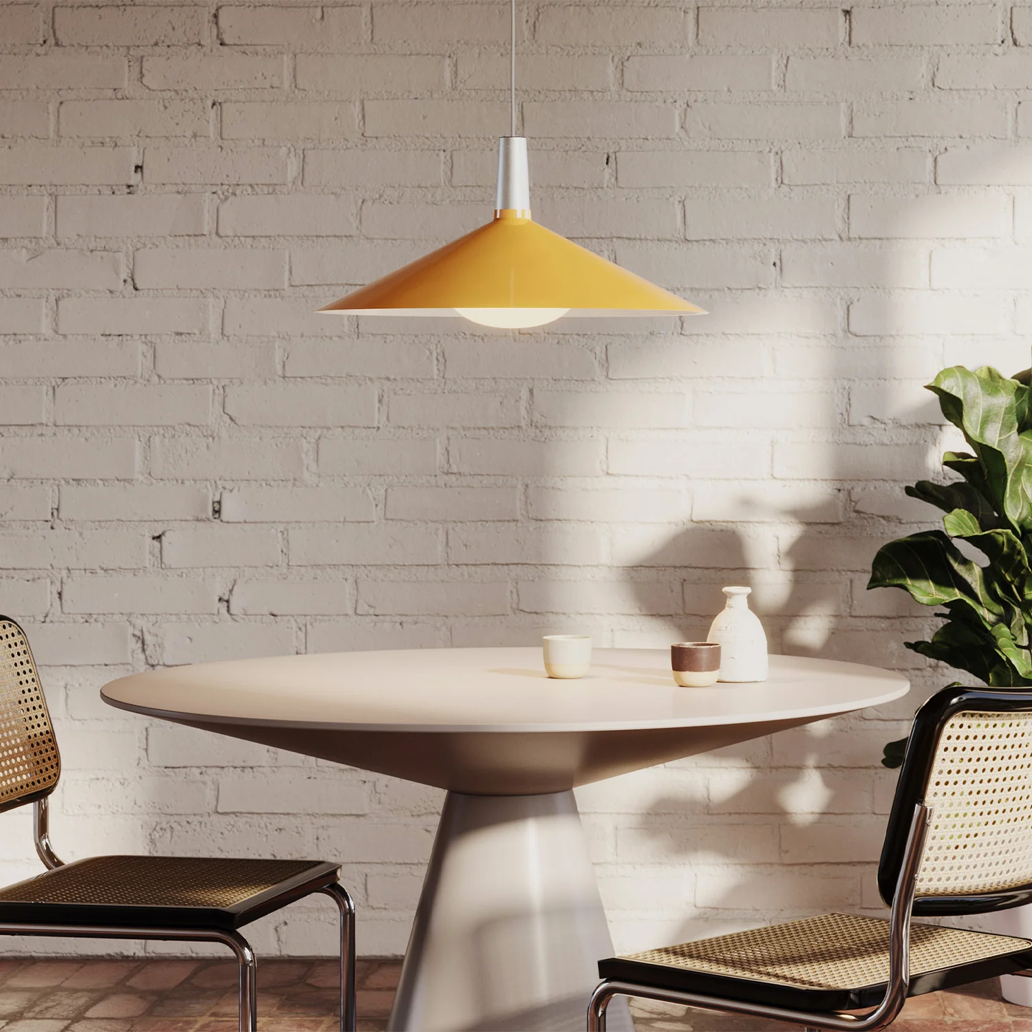 Bower is the debut shade series from Tala. Combining hand-spun steel shades from Yorkshire, UK, with anodised aluminium pendants, the modular system and numerous colours and sizes offers a variety of display options. The Bower C600 shade is a statement fixture, featuring a dramatically low incline and wide diameter to allow a broad spread of light below.
